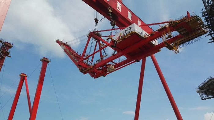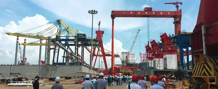 公司生產(chǎn)基地參觀同樣火爆:適逢總裝現(xiàn)場(chǎng)70T-60M岸邊集裝箱起重機(jī)項(xiàng)目整體吊裝, 1600T龍門(mén)吊平穩(wěn)吊起850噸的前后大梁、緩緩上升、精準(zhǔn)定位、穩(wěn)穩(wěn)落于該岸橋的門(mén)框上,現(xiàn)場(chǎng)高效的安裝工藝,給了在場(chǎng)的400余嘉賓巨大的視覺(jué)沖擊,掌聲、贊美聲陣陣不斷。公司整體室內(nèi)噴涂的涂裝工藝、超大型設(shè)備整機(jī)滾裝運(yùn)輸?shù)能浻布?shí)力也讓參觀嘉賓耳目一新。