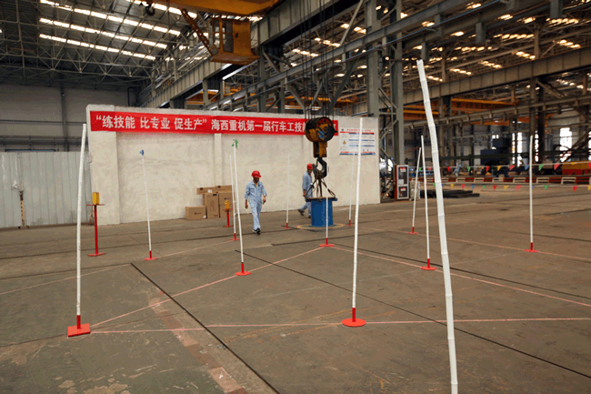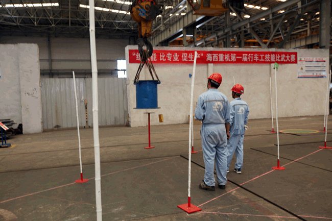 起重吊裝作業(yè)在公司諸多生產(chǎn)工藝環(huán)節(jié)當中,是使用頻率較高、危險性較高的作業(yè)工序,安全、平穩(wěn)、準確、快速地吊裝作業(yè)是高效生產(chǎn)的關(guān)鍵因素。行車占公司起重吊裝設(shè)備超過70%,因此行車工為我司的重點生產(chǎn)崗位之一,其技能水平的高低,在很大程度上影響著產(chǎn)品的生產(chǎn)節(jié)奏,甚至對公司整體上的生產(chǎn)節(jié)拍都會產(chǎn)生重大影響。公司一貫主張“不僅要有好的裝備,還要把裝備維護、保養(yǎng)好,更要把設(shè)備功用足用好”,在此背景下,為檢驗公司行車工的技能實力,提高行車工崗位意識和技能水平,促進行車工自主學(xué)習(xí)、苦練技能,進一步提升公司安全、高效的生產(chǎn)能力,由公司黨委主辦,工會承辦的行車工技能比武大賽應(yīng)運而生。