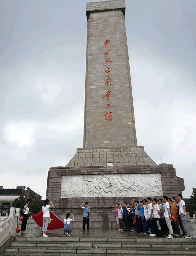 最后我們來到了刻有毛主席手書“革命烈士 永垂不朽”的革命烈士紀(jì)念碑下,懷著敬畏之心,高舉右手,莊嚴(yán)宣誓。