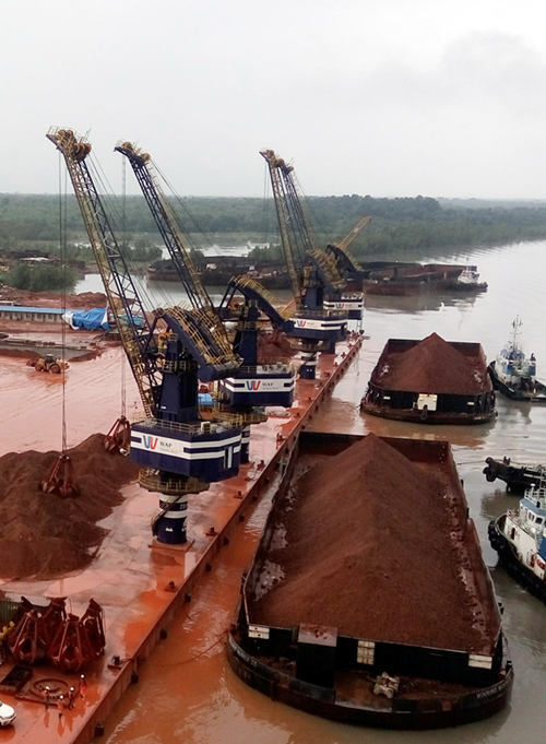 目前,韋立聯(lián)盟港口公司(WAP)滿負(fù)荷運(yùn)營,“海西重機(jī)”牌固定式起重機(jī)質(zhì)量可靠、裝船速度快,成功助力博凱內(nèi)港打破了港區(qū)泊位每個潮水位只能裝1條駁船的生產(chǎn)瓶頸,多次創(chuàng)造港區(qū)駁船轉(zhuǎn)運(yùn)新紀(jì)錄,為港區(qū)出礦量打下堅(jiān)實(shí)基礎(chǔ),大大提高了港區(qū)運(yùn)營能力。未來隨著該批固定式起重機(jī)的投產(chǎn),屆時14臺海西重機(jī)設(shè)備將為博凱內(nèi)港實(shí)現(xiàn)年3000萬噸裝卸目標(biāo)提供有力保證。