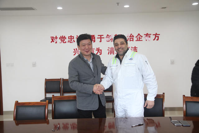 4月20日上午9點整公司723會議室,一場隆重的交船簽字儀式在這里如期舉行:海西重機黨委書記、董事長鄧振山與業(yè)主代表Sulaiman(蘇萊曼)正式簽署了SE-300LB海工平臺首制船的交船文件,預(yù)示著海西重機為老客戶設(shè)計制造的新一批海工平臺正式進入了陸續(xù)交船環(huán)節(jié)。