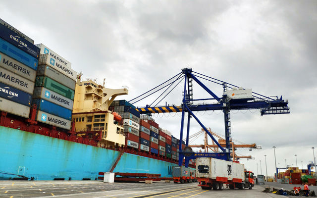 圖為海西重機(jī)制作的65T-65M超巴拿馬型岸橋,正在毛里求斯路易港服務(wù)