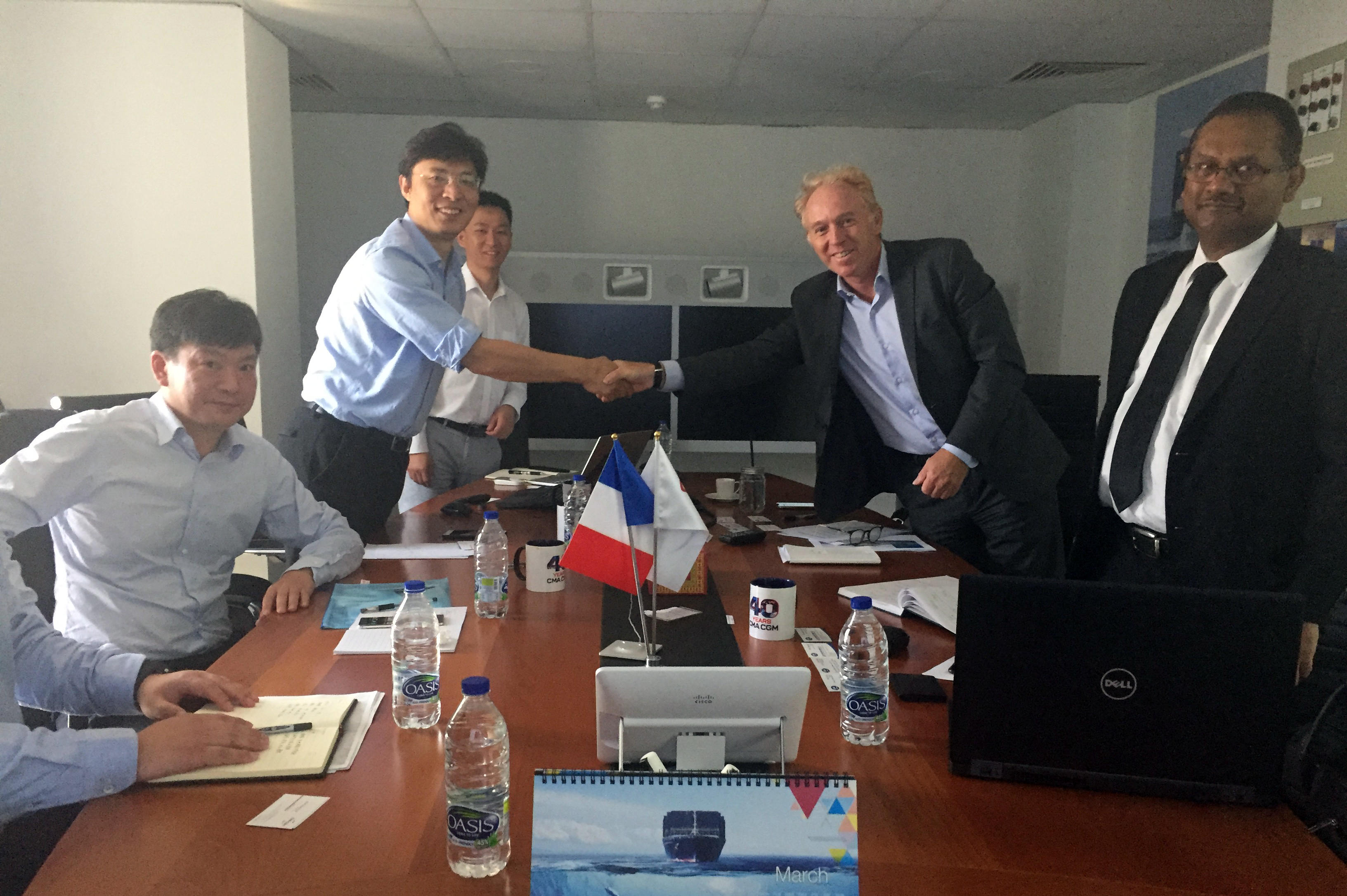 Mr. Courquin對馬聚勇一行的來訪表示熱烈歡迎,并介紹了達飛集團及達飛海灣地區(qū)的發(fā)展情況。達飛海運集團(CMA CGM)總部設在法國馬賽,始建于1978年,是法國第一、世界第三的集裝箱承運公司。Mr. Courquin希望通過此次會面,雙方可以增進認識、擴大共識、建立互信,充分發(fā)揮雙方優(yōu)勢,為開展合作墊定堅實基礎。