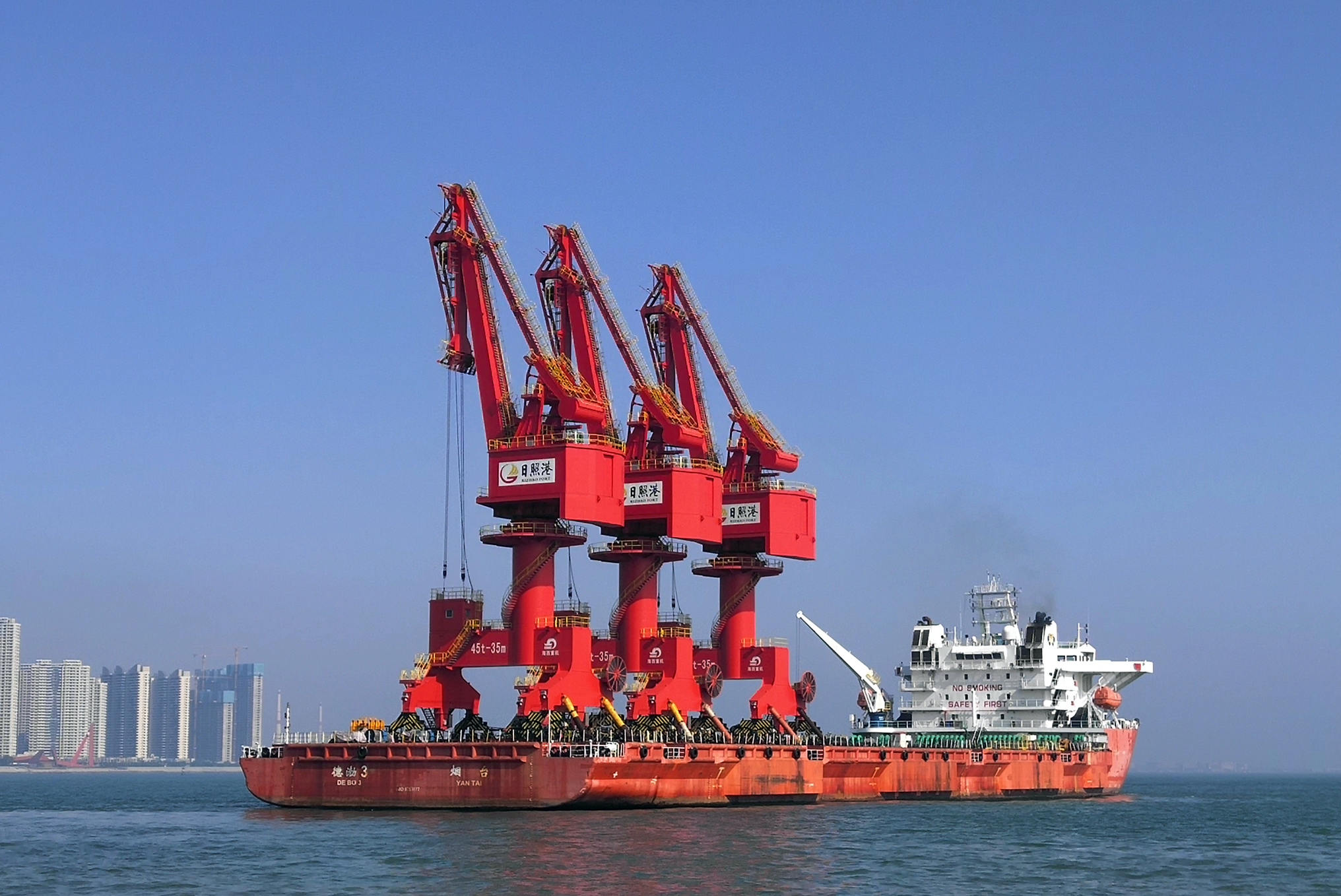 此次發(fā)運(yùn)的3臺門機(jī)將安裝在日照鋼鐵精品基地配套成品碼頭工程泊位上,為基地鋼鐵產(chǎn)成品裝船出廠及煤炭、廢鋼卸船作業(yè)提供服務(wù)。新開工的2臺門機(jī)與其屬于同一碼頭,該型號門機(jī)是海西重機(jī)性能完善、穩(wěn)定可靠、裝卸高效的成熟產(chǎn)品,可滿足大運(yùn)量、高效率和頻繁的散雜貨裝、卸船作業(yè)需要。
