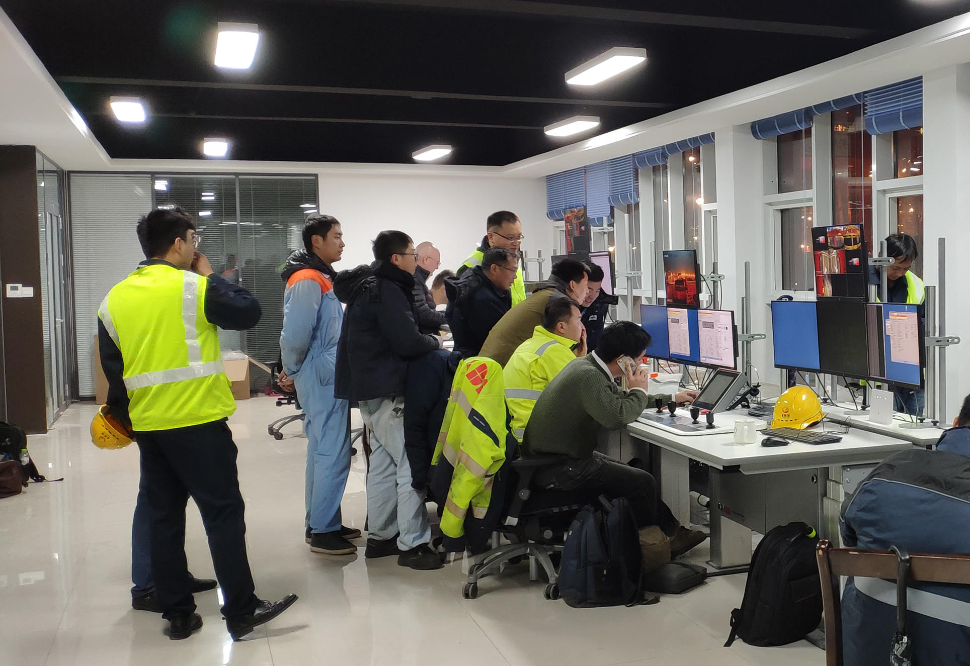 經(jīng)過(guò)11月份一個(gè)月的緊張努力,運(yùn)輸任務(wù)圓滿完成,藍(lán)圖成為了現(xiàn)實(shí)!現(xiàn)場(chǎng)調(diào)試階段,即使夜幕降臨,施工現(xiàn)場(chǎng)還是燈火通明,各個(gè)班組緊張有序地對(duì)當(dāng)天的工作收尾,遠(yuǎn)控中心調(diào)試工作有序進(jìn)行,不管多晚,技術(shù)人員都會(huì)對(duì)當(dāng)天工作進(jìn)行總結(jié),制定第二天的生產(chǎn)計(jì)劃。