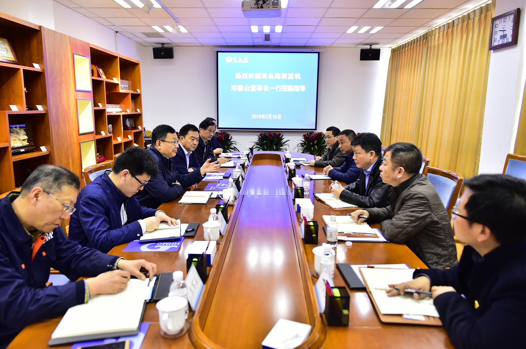 鄧振山感謝李董一直以來(lái)對(duì)海西重機(jī)的重視和幫助,李董在西海岸新區(qū)任職期間高屋建瓴的眼界、求真務(wù)實(shí)的作風(fēng)令人欽佩。鄧董表示海西重機(jī)地處膠州灣灣口,交通便利,有一流的港機(jī)生產(chǎn)條件和專業(yè)化的技術(shù)團(tuán)隊(duì),我們期望與青島港早日合作,在港機(jī)的設(shè)計(jì)、制造及服務(wù)方面能互補(bǔ)優(yōu)勢(shì)、協(xié)同發(fā)展。中船重工組建了中船重工(青島)海洋裝備研究院,把“船岸一體化智能港口”作為重要產(chǎn)業(yè)目標(biāo),而青島港集團(tuán)在自動(dòng)化碼頭有著成熟的系統(tǒng)和先進(jìn)技術(shù),希望共同推動(dòng)雙方的技術(shù)合作,將青島港“智慧港口”同“船岸一體化智能港口”深度融合,推向全球廣闊的市場(chǎng)。