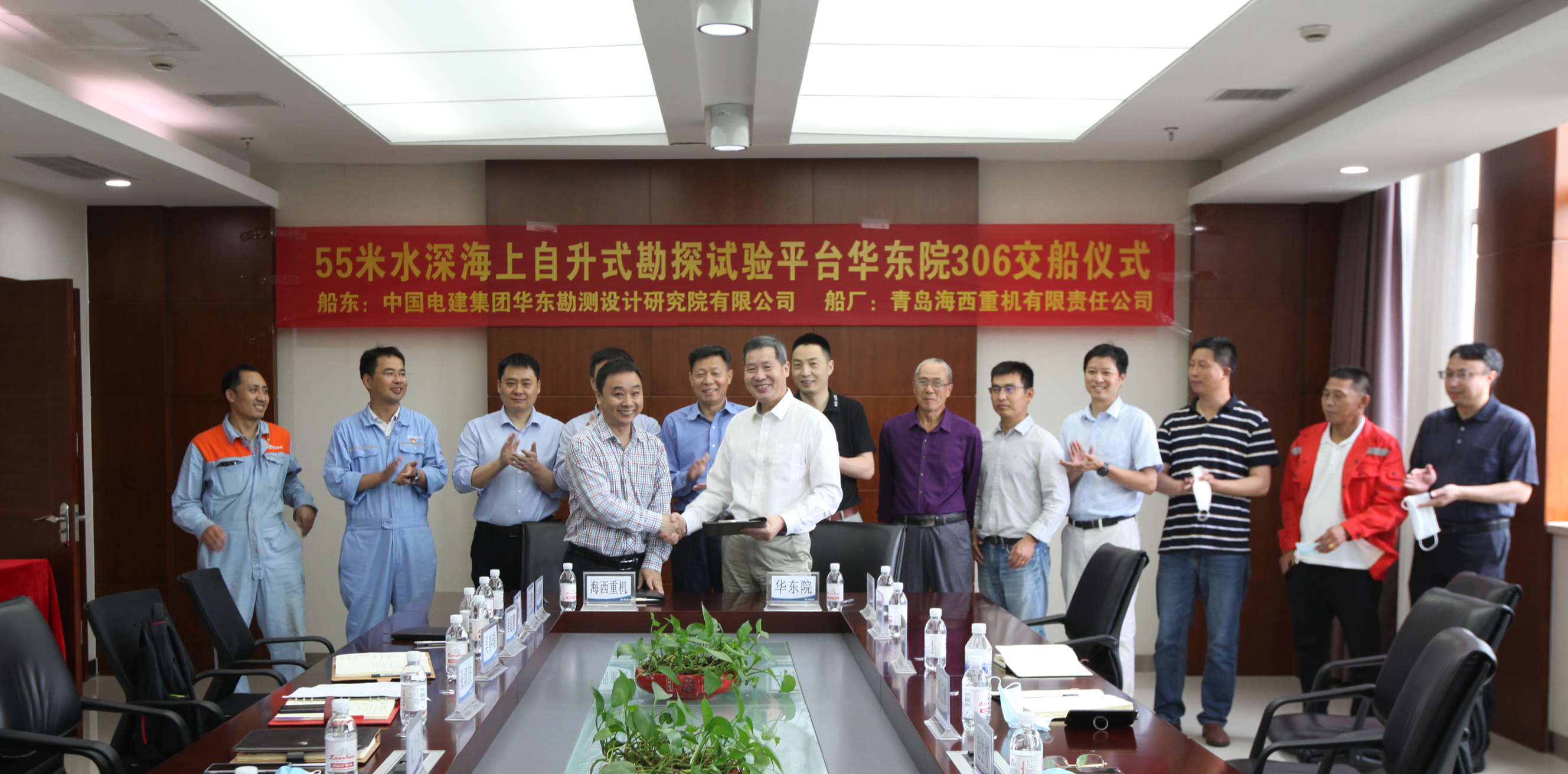 6月18日上午,華東院306自升式海上勘探平臺在武漢船機海西重機順利交付。