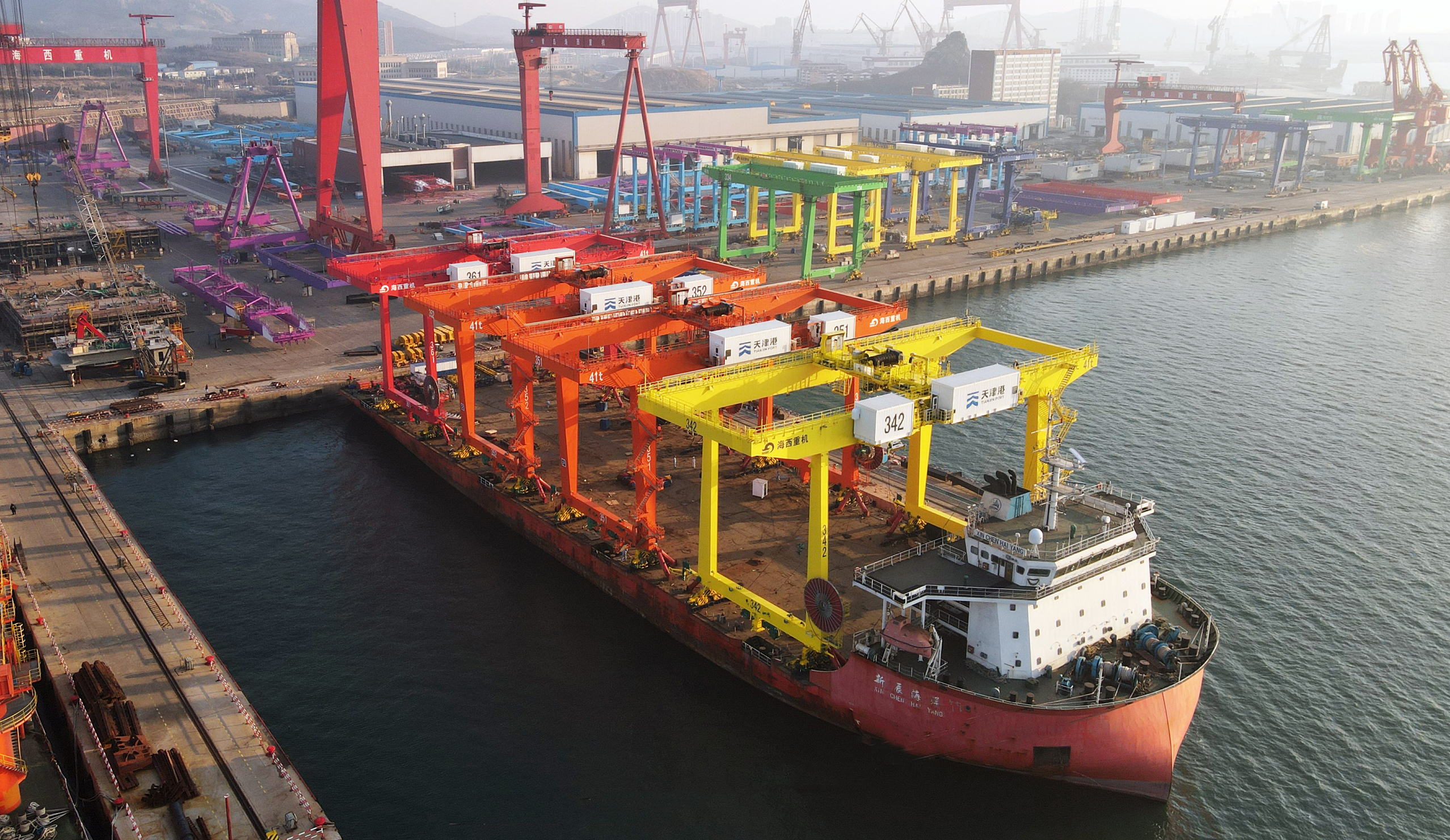 2月19日,天津港北疆港區(qū)C段智能化集裝箱碼頭一期工程項(xiàng)目第三批4臺(tái)自動(dòng)化軌道吊順利發(fā)運(yùn),中國船舶集團(tuán)旗下武漢船機(jī)海西重機(jī)公司完成了新春首發(fā)。