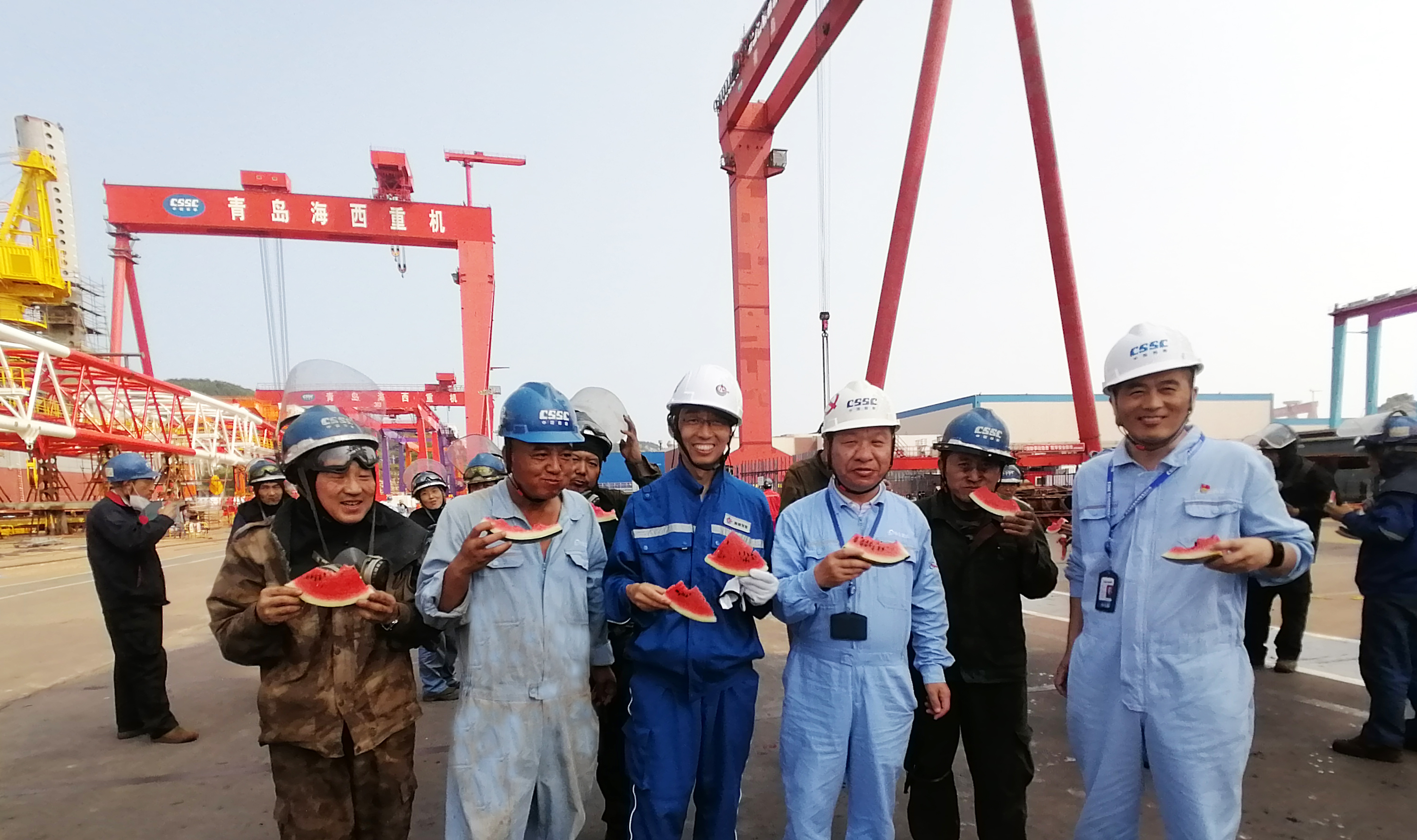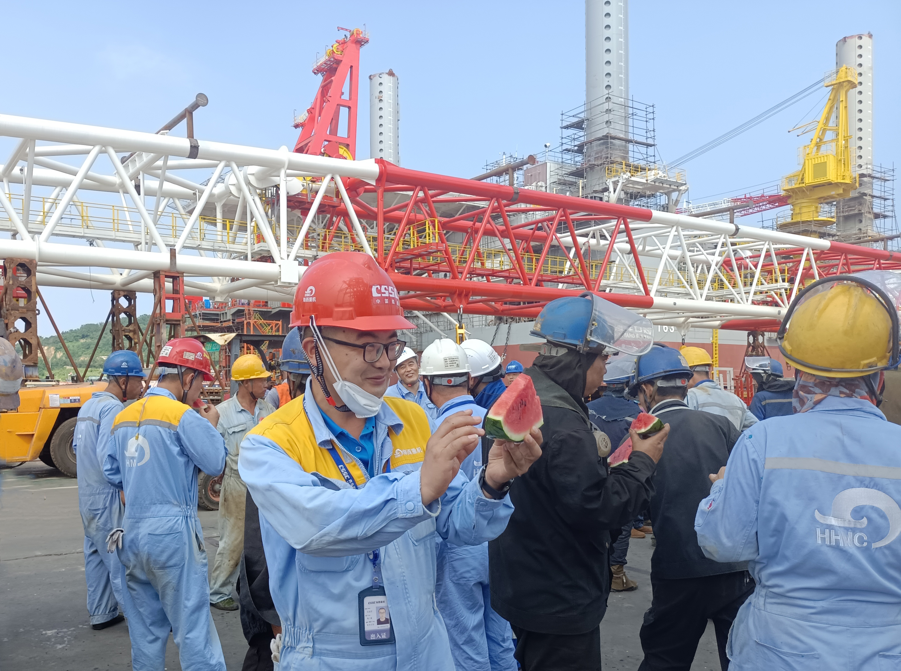 “西瓜真甜,感謝公司的關(guān)愛(ài),我們會(huì)更加努力,戰(zhàn)酷暑、搶節(jié)點(diǎn),更好地保障生產(chǎn)。”鋼構(gòu)制造部舾裝工人董學(xué)輝開(kāi)心地說(shuō)到。