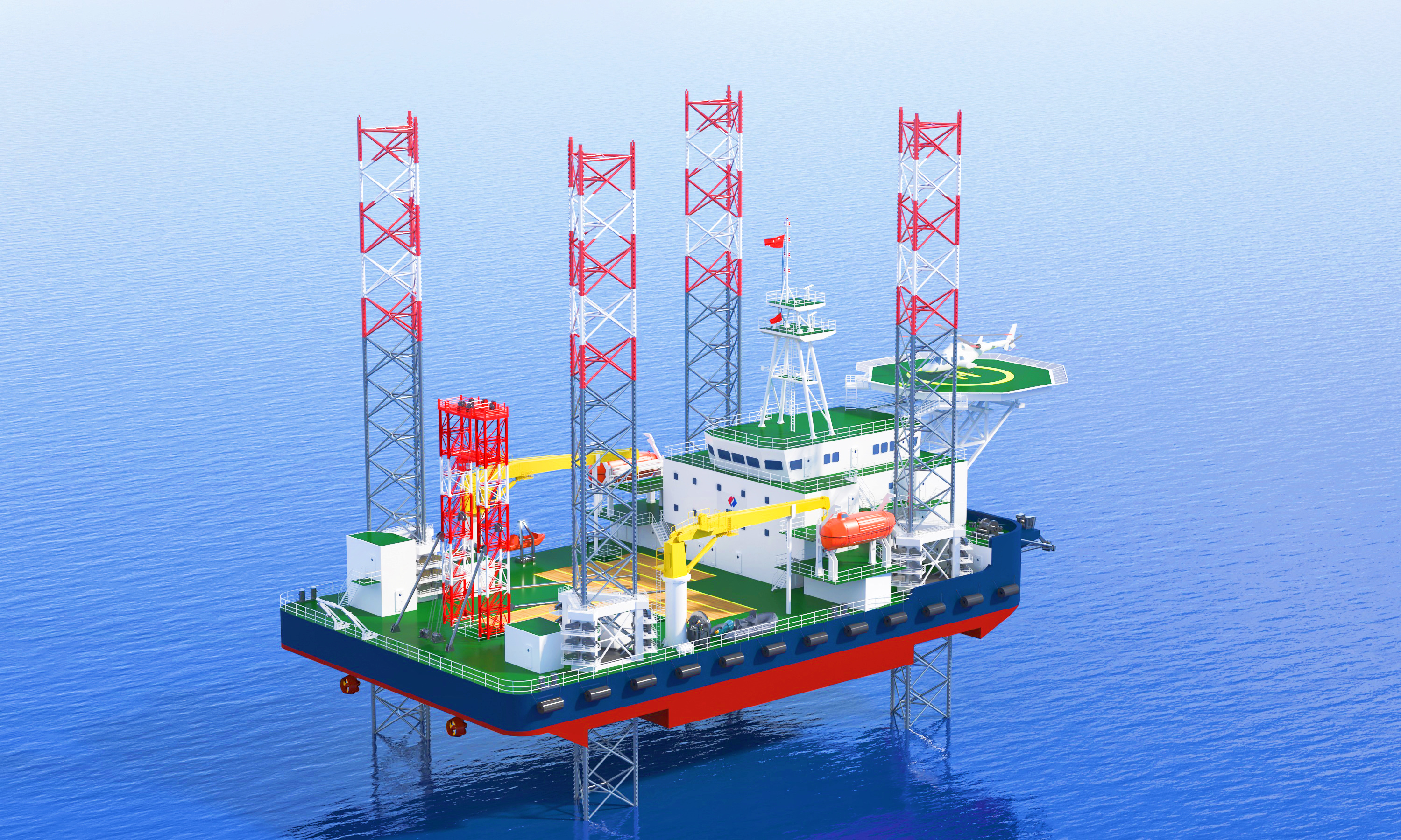 該平臺入級CCS,為鋼質(zhì)四樁腿自升式,采用電動齒輪齒條升降系統(tǒng),由平臺主體、樁腿(帶樁靴)、升降系統(tǒng)、推進系統(tǒng)、DP-1 動力定位系統(tǒng)、太陽能光伏、勘測試驗設備設施等部分組成。平臺樁腿全長約100米,最大作業(yè)水深75米,是國內(nèi)作業(yè)水深最深的勘測試驗平臺,主要用于海上工程勘測一體化作業(yè)及科研,包括鉆探、原位測試、物探、土工試驗等全作業(yè)流程。