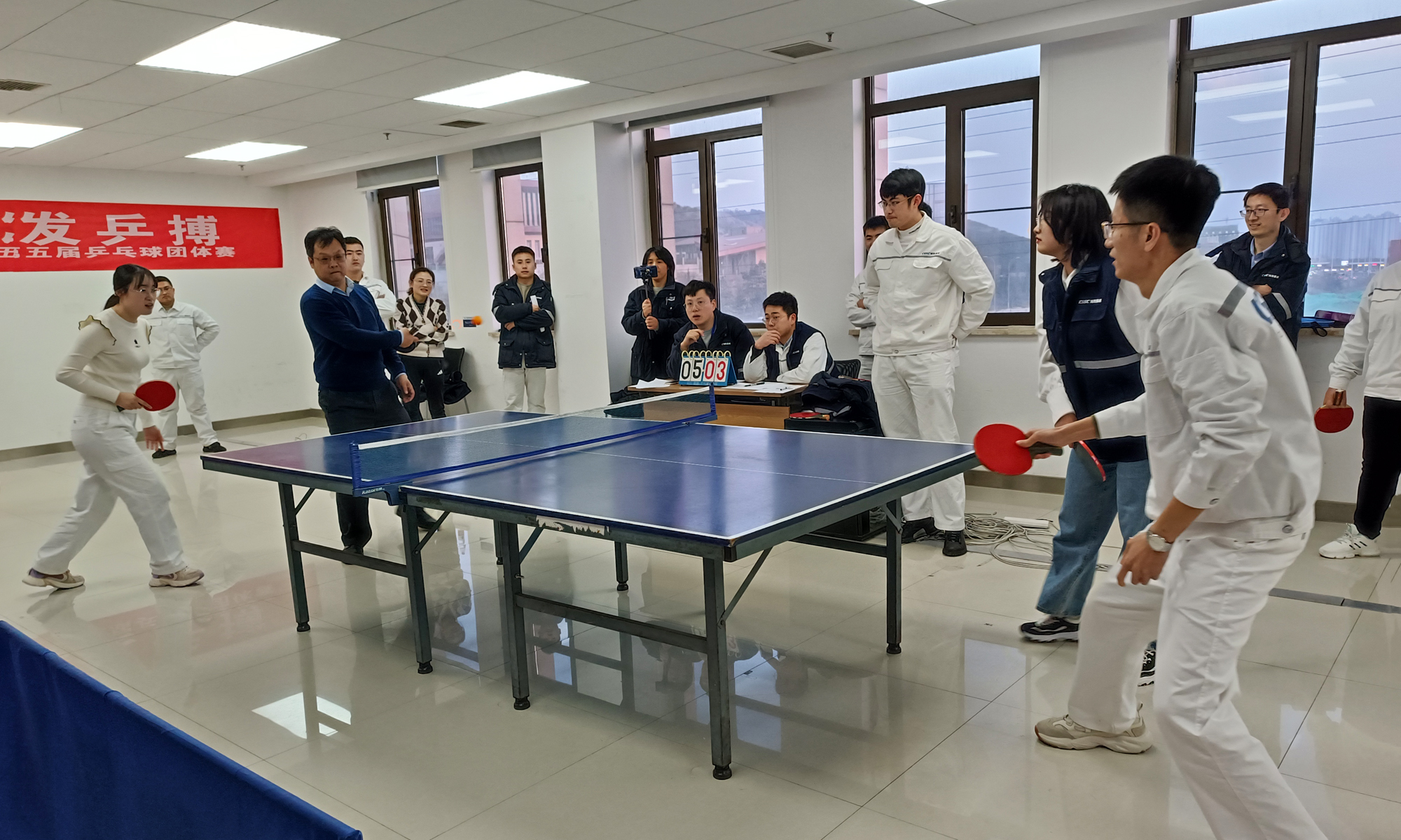 乒乓球團(tuán)體賽是海西重機(jī)的傳統(tǒng)品牌活動(dòng),有著廣泛的群眾基礎(chǔ),深受大家的喜愛。本屆團(tuán)體賽是疫情過(guò)后公司舉辦的首場(chǎng)體育競(jìng)賽活動(dòng),各參賽隊(duì)伍為達(dá)到最好的競(jìng)技狀態(tài)積極熱身、蓄勢(shì)待發(fā)。賽場(chǎng)上,選手們激揚(yáng)塵封一冬的熱情,激情揮拍、盡展風(fēng)彩;扣殺、吊球,招招出奇;斗智、斗勇,每分必爭(zhēng);強(qiáng)隊(duì)不輕敵,弱隊(duì)也不放棄。戰(zhàn)況瞬息變化,往往是山重水復(fù)疑無(wú)路,柳暗花明又一村。賽場(chǎng)氣氛熱烈歡快,精彩的比賽也博得場(chǎng)邊觀眾的陣陣喝彩,紛紛為自己支持的代表隊(duì)吶喊助威。