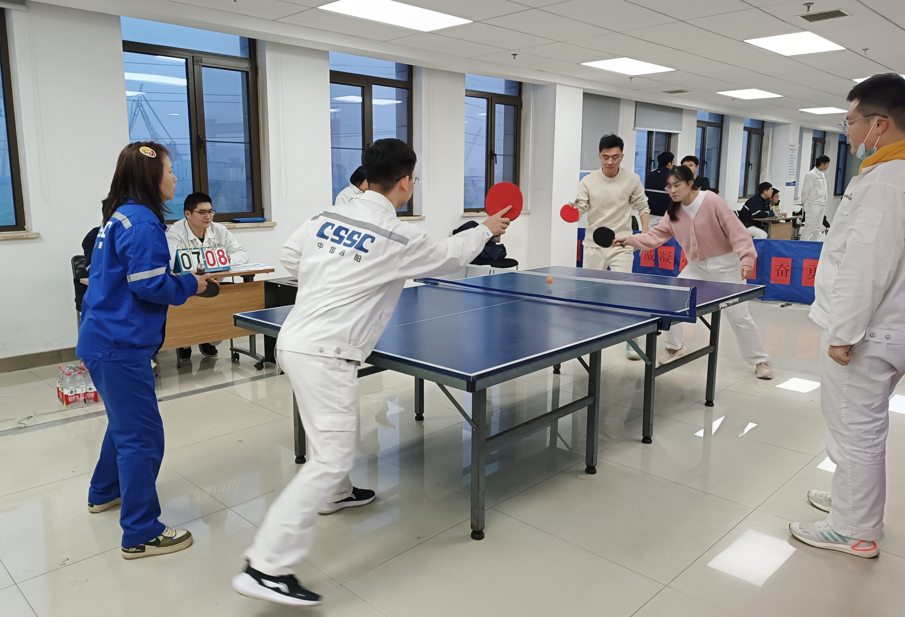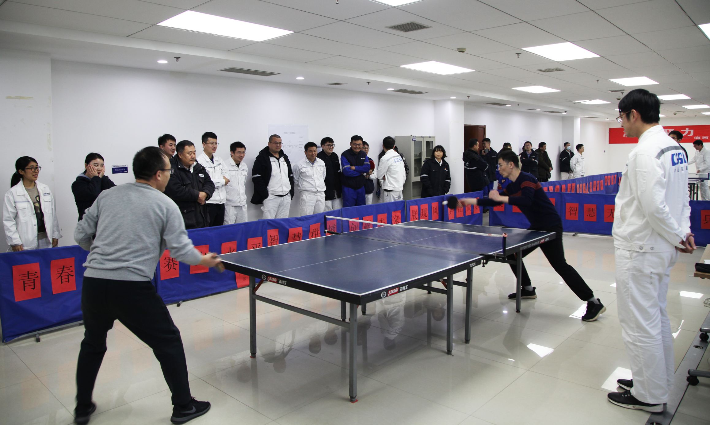 陽(yáng)春三月,疫去春來(lái),萬(wàn)物復(fù)蘇,備受期待的中國(guó)船舶集團(tuán)旗下武漢船機(jī)海西重機(jī)公司第五屆乒乓球團(tuán)體賽于2月28日揭開序幕。比賽獲得了大家的積極響應(yīng),來(lái)自各黨支部及部門的8支代表隊(duì),50余名職工參加了此次比賽,歷經(jīng)3天激烈角逐,于3月2日?qǐng)A滿落幕。最終,項(xiàng)目管理黨支部隊(duì)勇奪桂冠,生產(chǎn)保障部隊(duì)、港機(jī)所隊(duì)分別獲得亞軍、季軍。公司黨委副書記、紀(jì)委書記、工會(huì)主席朱聲凱到比賽現(xiàn)場(chǎng)為選手們鼓勁加油,并為獲獎(jiǎng)人員頒獎(jiǎng)。