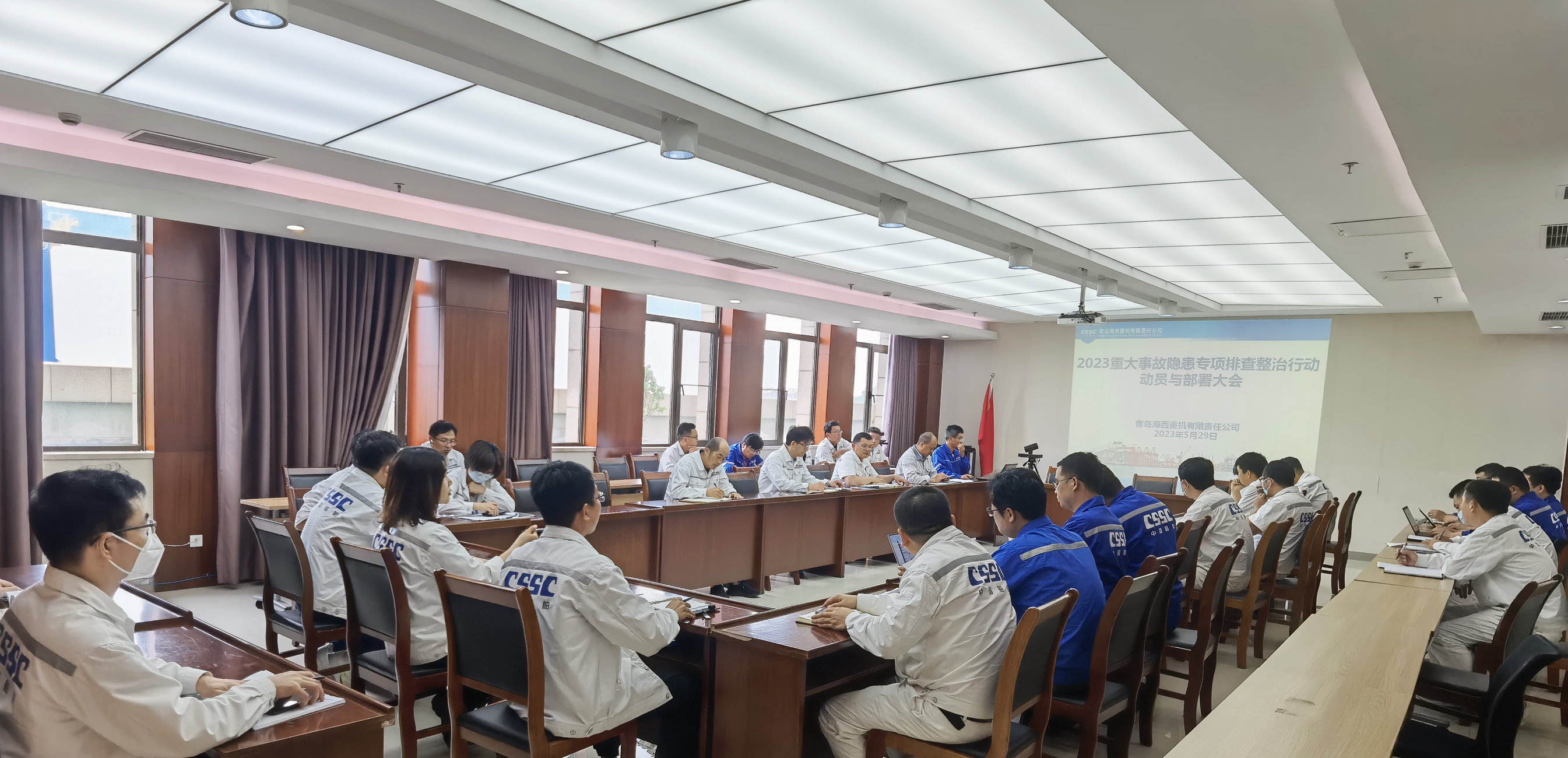 為認(rèn)真落實(shí)黨的二十大精神、習(xí)近平總書(shū)記關(guān)于安全生產(chǎn)重要論述和重要指示批示精神,按照青島市應(yīng)急管理局、集團(tuán)公司、武漢船機(jī)的決策部署及工作要求,中國(guó)船舶集團(tuán)旗下武漢船機(jī)海西重機(jī)公司于近日組織召開(kāi)重大事故隱患專(zhuān)項(xiàng)排查整治行動(dòng)動(dòng)員與部署大會(huì),武漢船機(jī)安全總監(jiān)江琳,公司黨委書(shū)記、董事長(zhǎng)李儒新,黨委副書(shū)記、紀(jì)委書(shū)記朱聲凱,副總經(jīng)理代振華以及相關(guān)部門(mén)負(fù)責(zé)人出席會(huì)議。