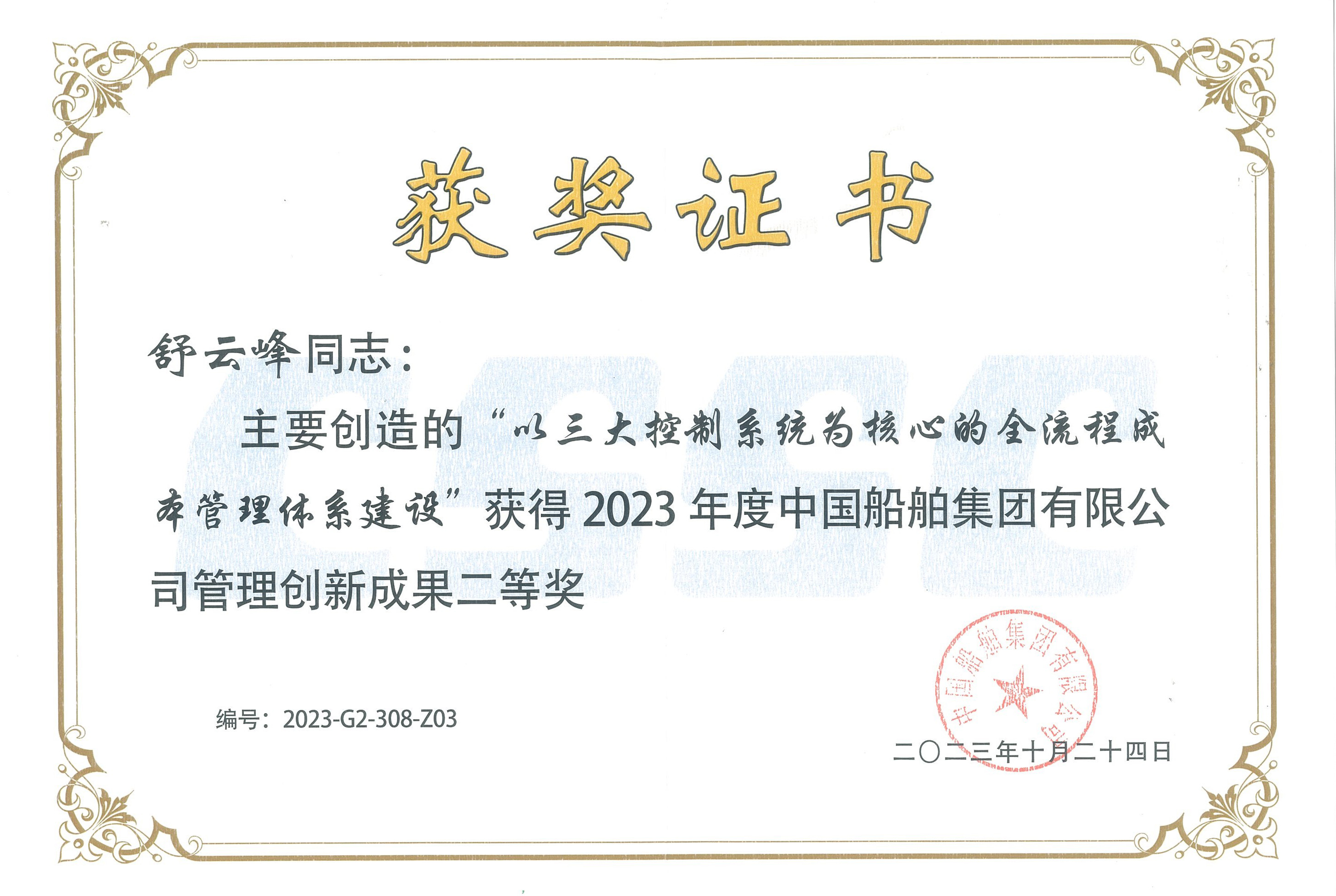 近日,集團(tuán)公司傳來喜訊,海西重機(jī)“以三大控制系統(tǒng)為核心的全流程成本管理體系建設(shè)”管理創(chuàng)新成果榮獲中國船舶集團(tuán)2023年度管理創(chuàng)新成果二等獎(jiǎng)。