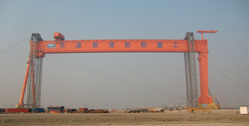 青島海西重機(jī)有限責(zé)任公司總承制的天津新港船舶重工有限責(zé)任公司臨港造修船基地首臺(tái)600噸×207米龍門吊,9月23日上午開始預(yù)提升,9月26日下午13點(diǎn)36分開始正式提升,于10月7日下午16點(diǎn)53分順利安裝到位,創(chuàng)下了國(guó)內(nèi)同類型龍門吊提升時(shí)間最短紀(jì)錄。