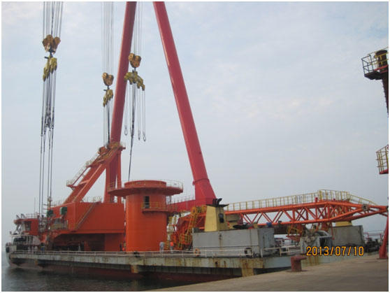 G127項(xiàng)目制作后期,遇到連續(xù)陰雨天氣,對構(gòu)件涂裝工作造成了極大影響,經(jīng)過各部門的團(tuán)結(jié)協(xié)作,使該項(xiàng)目在預(yù)定的時(shí)間完成了裝船工作。該項(xiàng)目的成功制作,為我司設(shè)計(jì)與制作大噸位的固定式回轉(zhuǎn)起重機(jī)積累了寶貴的經(jīng)驗(yàn),同時(shí)也成功驗(yàn)證了我司可以合理利用1600T龍門吊和突堤碼頭港池進(jìn)行有效配合,直接進(jìn)行港機(jī)大件甚至是整機(jī)的吊裝上船作業(yè)。
