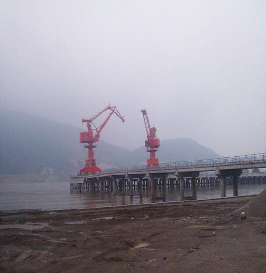 武穴港區(qū)件雜貨碼頭工程是武穴市“十一五”重點(diǎn)港航建設(shè)項(xiàng)目,是2009年度黃岡市交通“十件大事”和湖北省水運(yùn)建設(shè)“十大項(xiàng)目”之一,也是目前長(zhǎng)江北岸下至安慶上至陽(yáng)邏區(qū)間最大的件雜貨碼頭,青島海西重機(jī)兩臺(tái)門機(jī)的成功落軌標(biāo)志著該項(xiàng)目已取得了初步成功。