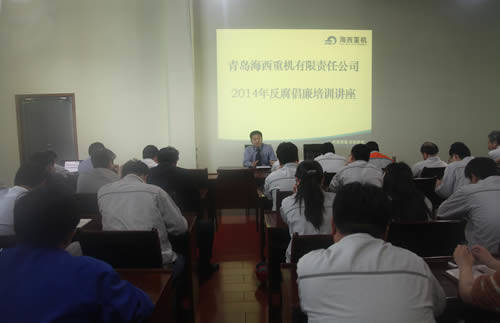 5月22日,海西重機(jī)邀請黃島區(qū)人民檢察院對口部門,在海西重機(jī)舉辦了2014年反腐倡廉培訓(xùn)講座,公司黨委書記孫總參加了培訓(xùn)講座。